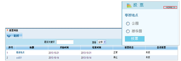 参与:您可在班级空间首页下的投票,参与最新的投票。点击more查看所有投票的记录。也可以在华海智慧校园页面下的“参与投票”内参与投票。