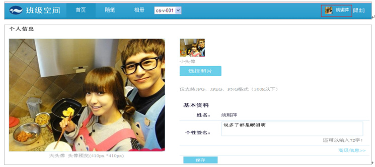 点击导航栏的姓名或头像,进入“个人信息”编辑上传页面。
