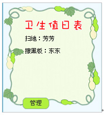 首页下的卫生值日表,点击“管理”进行文字编辑。